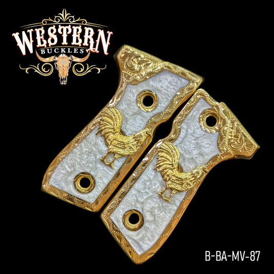 Cachas Beretta 92fs Grips Gallo Resina Blanca
