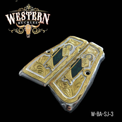 Cachas de alpaca calibre 20 con terminación oro y plata, el terminado contiene una cantidad de 5 micras de baño de oro de 24k y un baño de plata .925.