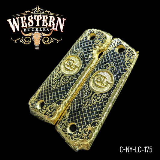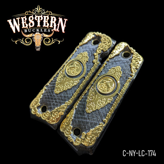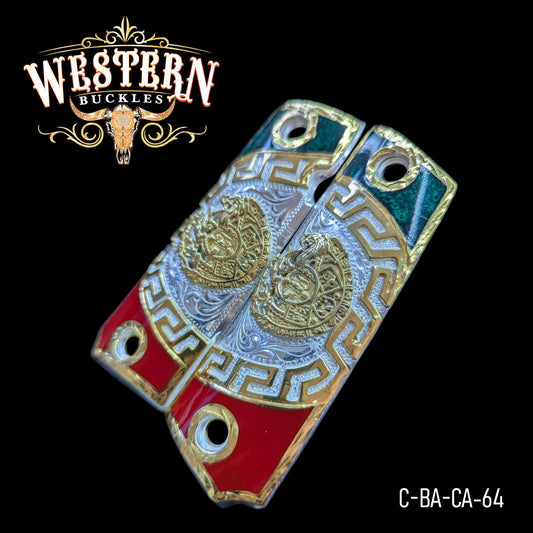 Cacha Colt 1911 Caballo Azteca Oro y Plata Rameado.
