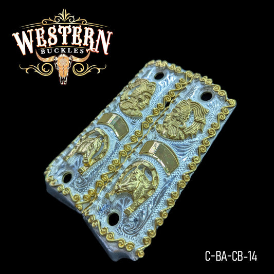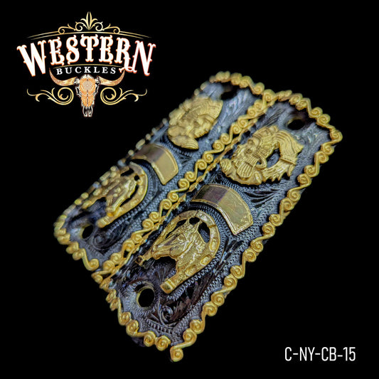 Cacha Colt 1911 Caballo Azteca Oro y Plata Rameado