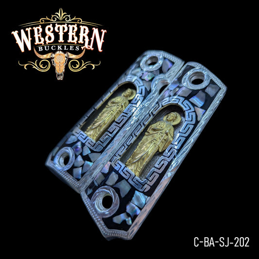 Cacha Colt 1911 San Judas Plata y Niquel Negro