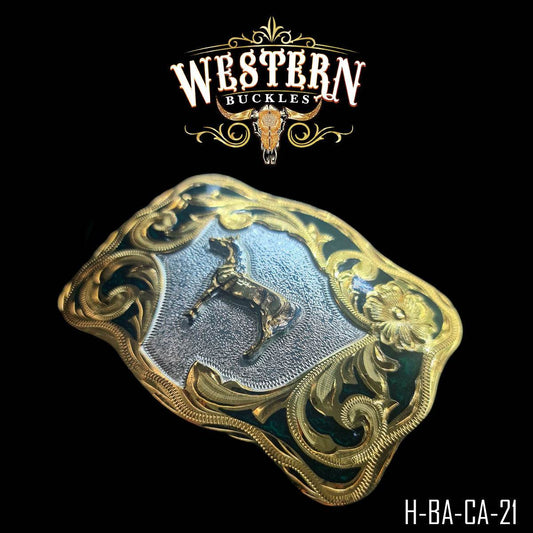 Hebilla Cuadrada De Craneo De Toro Con Chapa De Oro