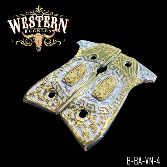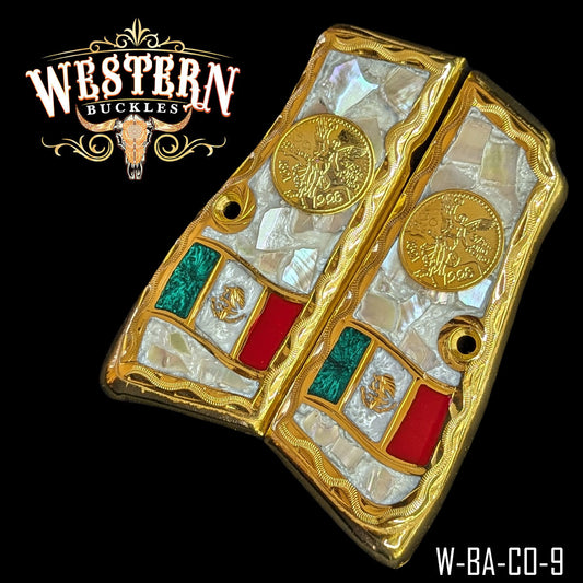 Cacha Colt 1911 Caballo Azteca Oro y Plata Rameado