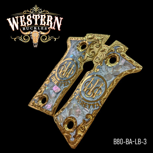Cacha Beretta 80X Logo Rameado Niquel y Plata