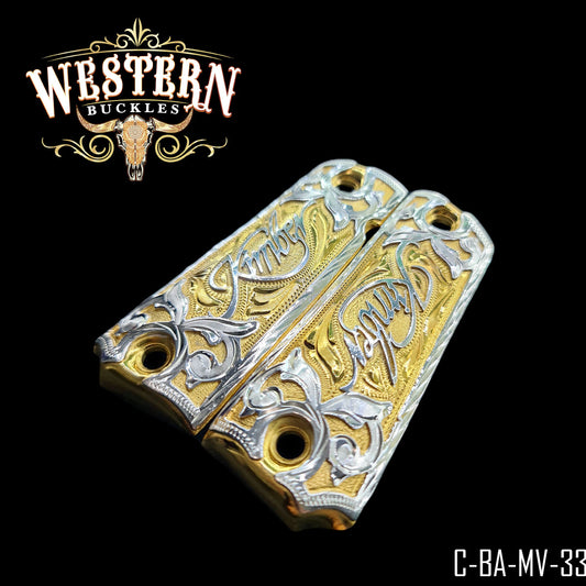 Cacha Colt 1911 Caballo Relinchando Oro y Plata