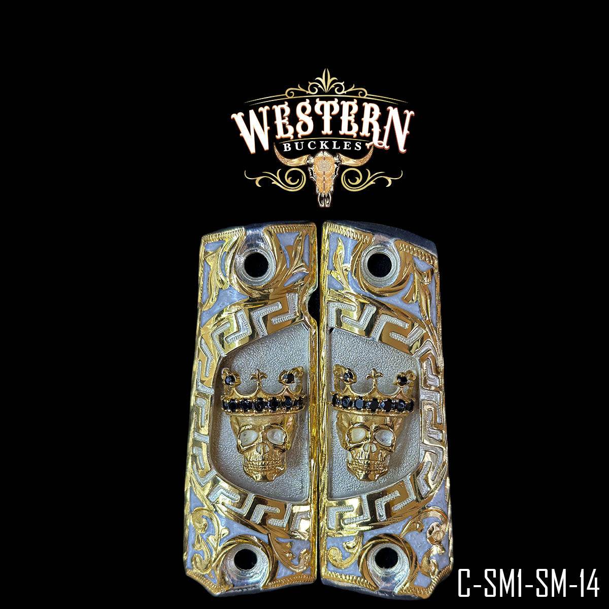 Cachas en plata con oro y zirconias para colt 1911 grips