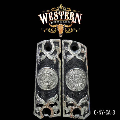Cacha Colt 1911 Calendario Rameado Niquel Negro y Plata